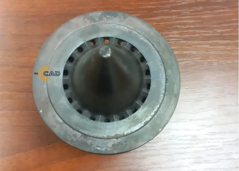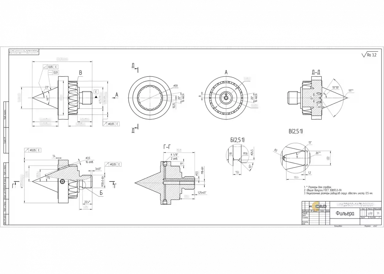 Для разработки чертежа заказчик предоставил в качестве образца фильеру для экструдера, работающего с полимерными материалами. Перед нами стояла задача выпустить чертеж для изготовления фильеры и установки ее на линию.
