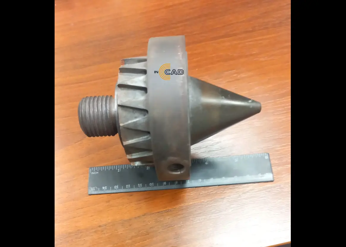 Так как деталь имеет конусную часть для обеспечения точности замеров было принято проводить измерения с помощью 3D-сканирования. По результатам сканирования мы отстроили твердотельную 3D-модель и на основании нее выпустили чертеж.